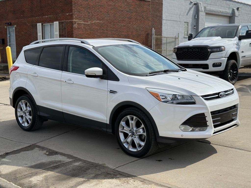 This vehicle is located at E Drive Motors. We are mainly by appointment only. You can view our entire selection of inventory online or call to schedule a showing at Edrivemotors.com We offer financing for all types of credit and we do accept trade ins. Carfax always available on our website. We do ship out of state. Ask us about a shipping quote if you do not live near us or ask us for a ride from the airport (CLE) which is always complementary when available. Serving Cleveland and surrounding areas, Cuyahoga County, Lake County, Summit County, Stark Counting, Geauga County and Ashtabula Counties. This Ford Escape has many features and is well equipped including, Active Park Assist, Bi-Xenon High-Intensity Discharge Headlamps, BLIS w/Cross Traffic Alert, Equipment Group 301A, Rain-Sensing Wipers, Titanium Technology Package. 2015 White Platinum Clearcoat Metallic Ford Escape Titanium EcoBoost 1.6L I4 GTDi DOHC Turbocharged VCT
