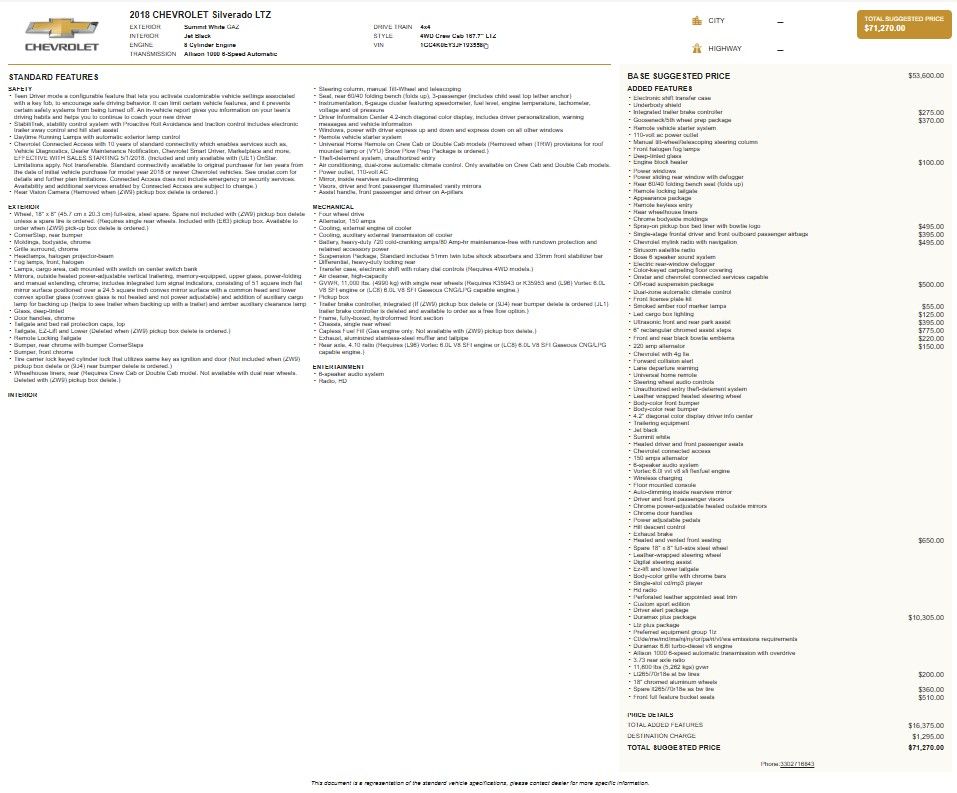 CARFAX One-Owner. 2018 Chevrolet Silverado 3500HD LTZ 4D Crew Cab Duramax 6.6L V8 Turbodiesel Allison 1000 6-Speed Automatic 4WD