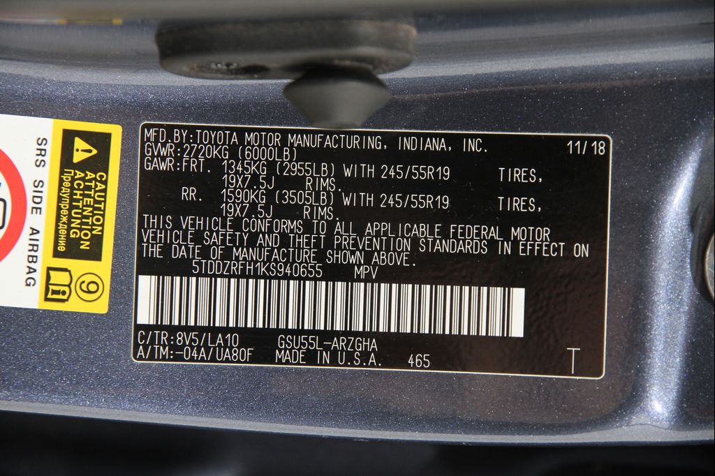 VIN 5TDDZRFH1KS940655