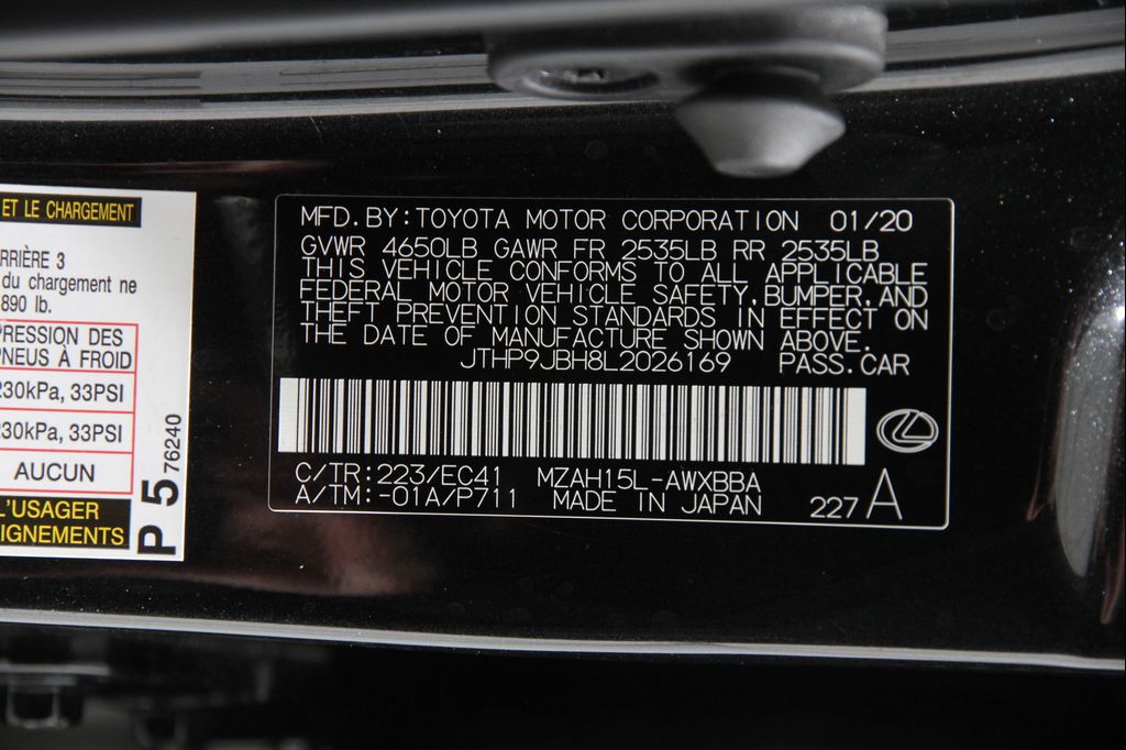 VIN JTHP9JBH8L2026169