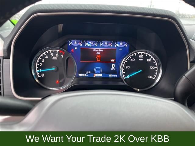 - Connected Built-In Navigation, Dual Zone Automatic Temperature Control, Intelligent Access with Push Button Start, Remote Start System with Remote Tailgate Release, SecuriCode Drivers Side Keyless-Entry Keypad, 2-Bar Style Grille with Chrome 2 Minor Bars, Chrome Door & Tailgate Handles with Body-Color Bezel, Chrome Single-Tip Exhaust, Chrome Step Bars, LED Box Lighting with Zone Lighting, LED Reflector Headlamps, LED Sideview Mirror Spotlights, Power Glass Heated Sideview Mirrors, 8" Productivity Screen in Instrument Cluster, Auto-Dimming Rear-View Mirror, Leather-Wrapped Steering Wheel, Onboard 400W Outlet, SYNC 4 with Enhanced Voice Recognition, 10-Way Power Driver & Passenger Seats, Heated Front Seats, Rear Under-Seat Storage, and Class IV Trailer Hitch Receiver.