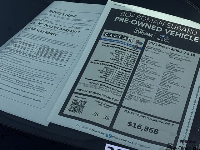 2021 Nissan Altima 2.5 SR 2.5L 4-Cylinder DOHC 16V CVT with Xtronic FWD Gun Metallic
