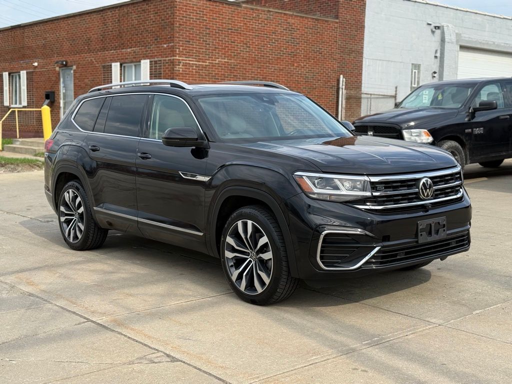 This vehicle is located at E Drive Motors. We are mainly by appointment only. You can view our entire selection of inventory online or call to schedule a showing at Edrivemotors.com We offer financing for all types of credit and we do accept trade ins. Carfax always available on our website. We do ship out of state. Ask us about a shipping quote if you do not live near us or ask us for a ride from the airport (CLE) which is always complementary when available. Serving Cleveland and surrounding areas, Cuyahoga County, Lake County, Summit County, Stark Counting, Geauga County and Ashtabula Counties. This Volkswagen Atlas has many features and is well equipped including, Navigation System, Trailer Hitch Extras. 2021 Deep Black Volkswagen Atlas 3.6L V6 SEL Premium R-Line 3.6L VR6