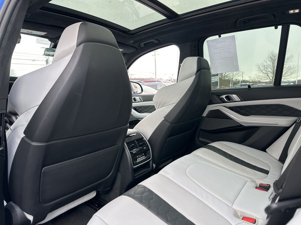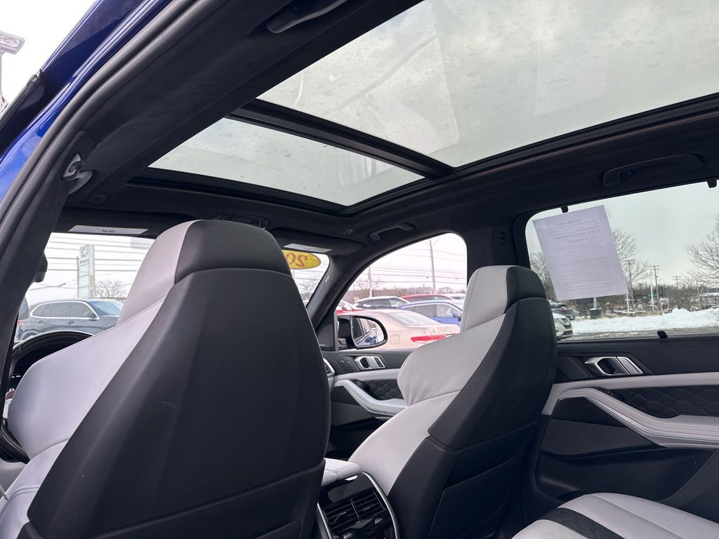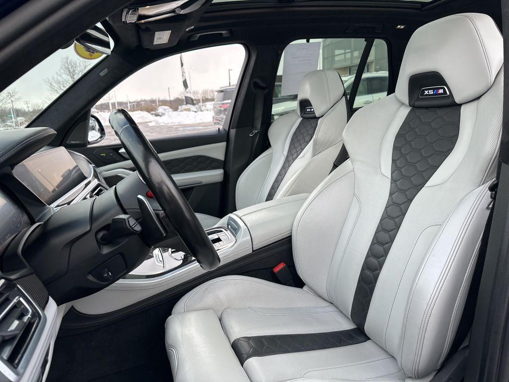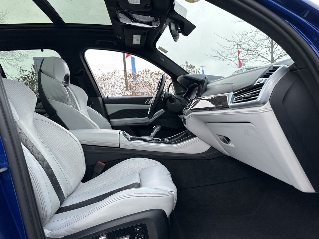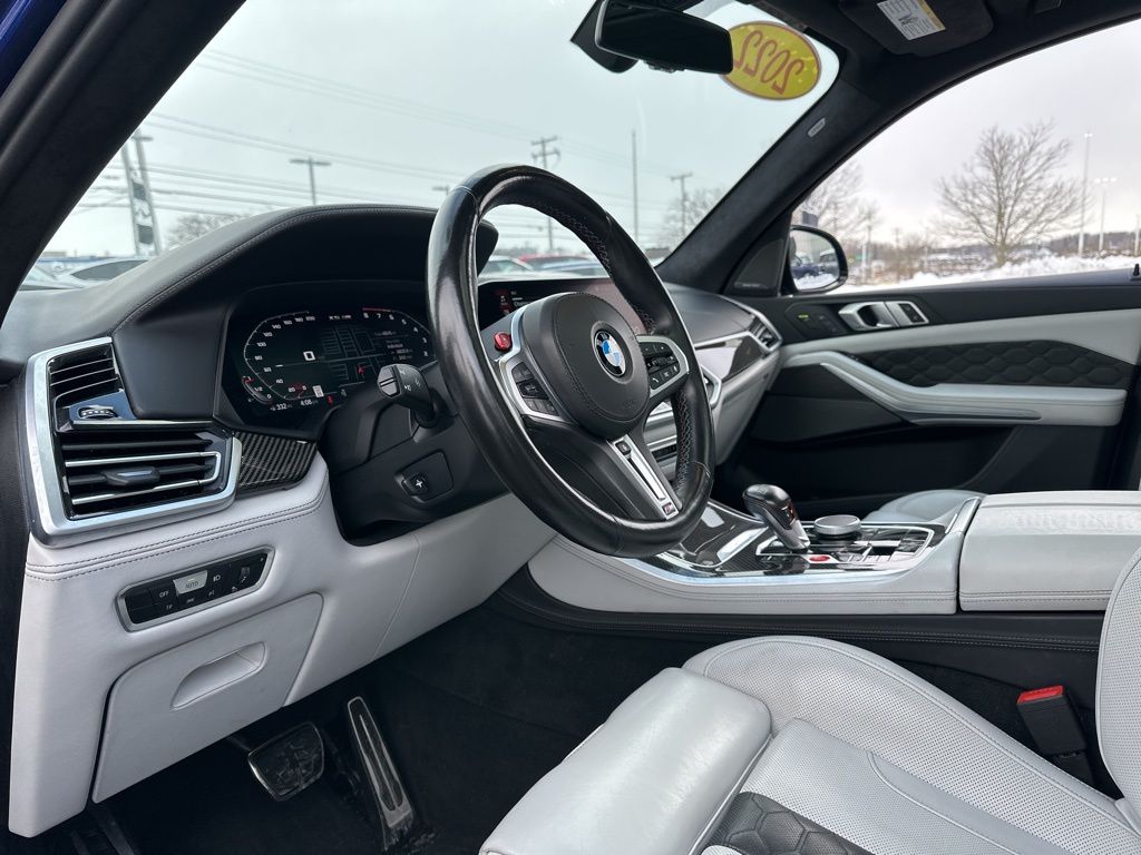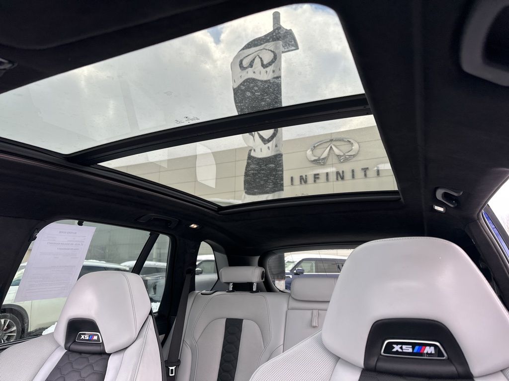 This BMW X5 M also boasts an impressive array of advanced features, including a Navigation System, 16 Speakers, a harman/kardon Surround Sound System, Memory Seat, Remote Engine Start, Emergency Communication System, Power Moonroof, Soft-Close Automatic Doors, Security System, Heated Steering Wheel, Extended Merino Leather Seat Upholstery, Front & Rear Heated Seats, Front Massaging Seats, Front Ventilated Seats, and Rear Manual Side Window Shades.