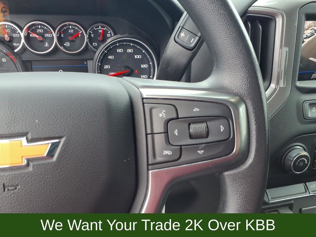 10-Way Power Driver Seat Adjuster w/Lumbar, 120-Volt Bed Mounted Power Outlet, 120-Volt Instrument Panel Power Outlet, 170 Amp Alternator, 2-Speed Electronic Shift Transfer Case, 3.5" Diagonal Monochromatic Display DIC, 3.73 Rear Axle Ratio, 4-Wheel Disc Brakes, 4.2" Diagonal Color Display Driver Info Center, 6 Speakers, 6-Speaker Audio System, 720 Cold-Cranking Amps Heavy-Duty Battery, ABS brakes, Air Conditioning, Alloy wheels, AM/FM radio, Apple CarPlay/Android Auto, Automatic Emergency Braking, Black Mirror Caps, Bluetooth® For Phone, Body Color Front Grille, Brake assist, Cloth Seat Trim, Color-Keyed Carpeting Floor Covering, Custom Convenience Package, Deep-Tinted Glass, Delay-off headlights, Driver door bin, Dual front impact airbags, Dual front side impact airbags, Electric Rear-Window Defogger, Electronic Cruise Control w/Set & Resume Speed, Electronic Stability Control, EZ Lift Power Lock & Release Tailgate, Forward Collision Alert, Front 40/20/40 Split-Bench Seats, Front anti-roll bar, Front Center Armrest w/Storage, Front reading lights, Front Rubberized Vinyl Floor Mats, Front wheel independent suspension, Fully automatic headlights, Heated door mirrors, Heated Vertical Trailering Mirrors, Illuminated entry, Integrated Trailer Brake Controller, LED Cargo Area Lighting, Locking Tailgate, Low tire pressure warning, Manual Tailgate Function w/No EZ Lift, Manual Tilt-Wheel Steering Column, Occupant sensing airbag, Outside temperature display, Overhead airbag, Overhead console, Panic alarm, Passenger door bin, Passenger vanity mirror, Power Door Locks, Power door mirrors, Power Front Windows w/Driver Express Up/Down, Power Front Windows w/Passenger Express Down, Power Rear Windows w/Express Down, Power steering, Power windows, Preferred Equipment Group 1CX, Premium audio system: Chevrolet Infotainment 3, Radio: Chevrolet Infotainment 3 System, Rear 60/40 Folding Bench Seat (Folds Up), Rear reading lights, Rear Rubberized Vinyl Floor Mats, Rear step bumper, Remote Keyless Entry, Remote keyless entry, Remote Vehicle Starter System, Safety Confidence Package, Speed control, Split folding rear seat, Standard Tailgate, Steering Wheel Audio Controls, Suspension Package, Tachometer, Tilt steering wheel, Traction control, Trip computer, Turn signal indicator mirrors, Variably intermittent wipers, Voltmeter, Wheels: 20" 10-Spoke Machined Aluminum.