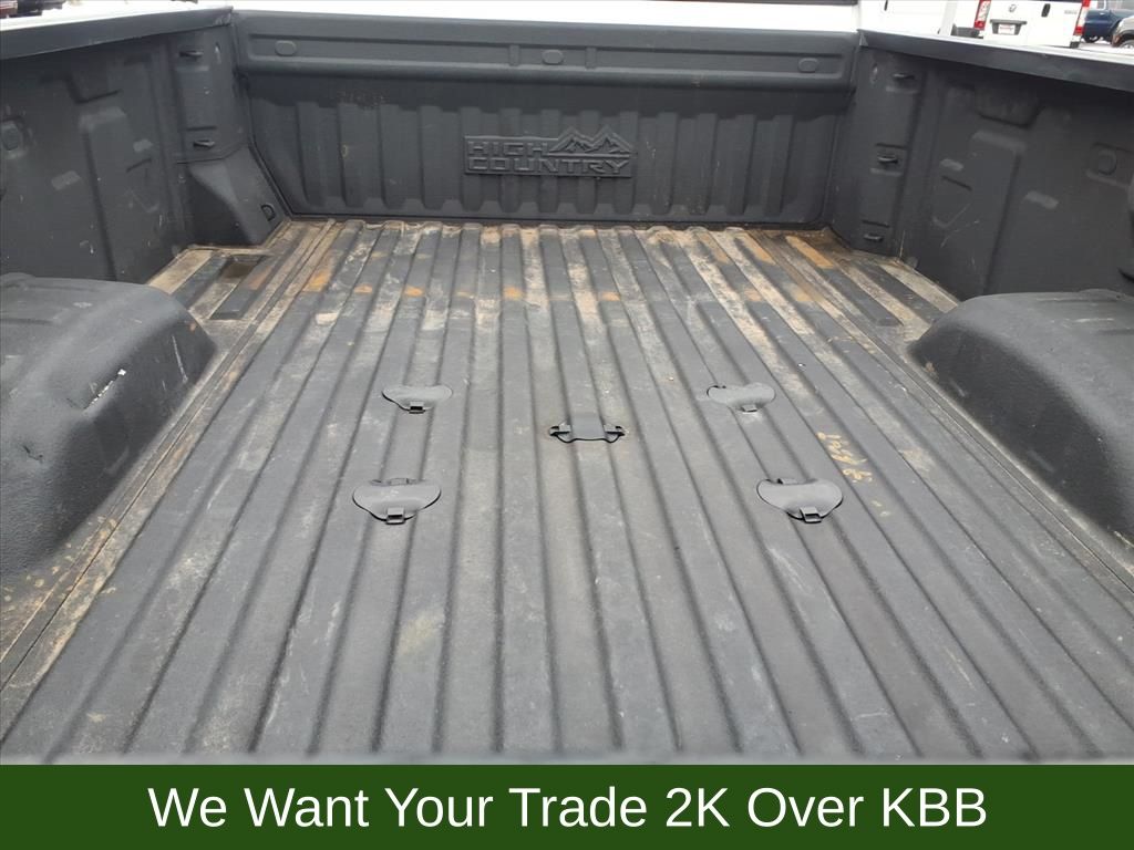 This Silverado 3500HD High Country is meticulously equipped to handle the toughest jobs with confidence. The Durabed pickup bed, enhanced by the Chevytec Spray-On Black Bedliner, provides unparalleled durability and functionality. The power-retractable assist steps with LED lighting make accessing the cabin a breeze, while the 220-amp alternator and engine block heater ensure reliable performance in even the harshest conditions.