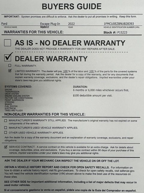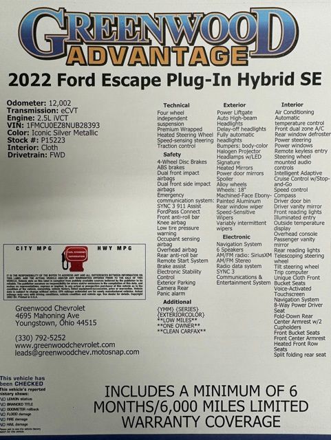2022 Ford Escape Plug-In Hybrid SE FWD Iconic Silver Metallic