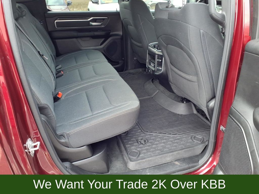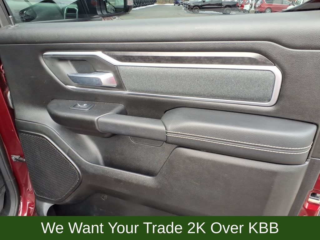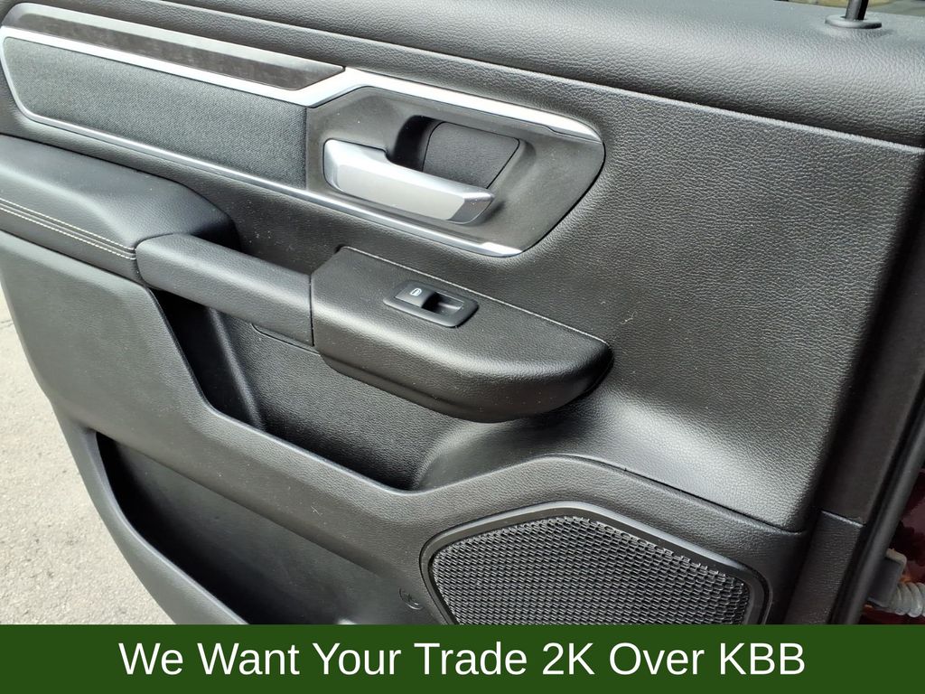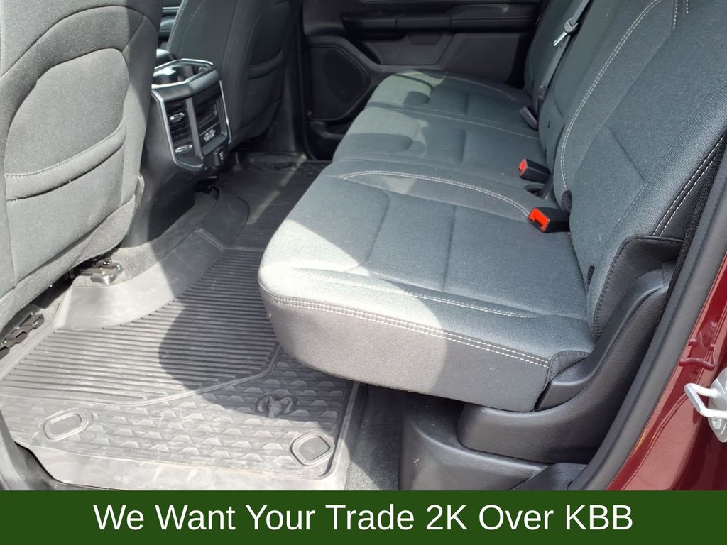 115V Auxiliary Power Outlet, 115V Auxiliary Rear Power Outlet, 2nd Row In Floor Storage Bins, 3 Rear Seat Head Restraints, 3.21 Rear Axle Ratio, 4 Way Front Headrests, 4-Wheel Disc Brakes, 400W Inverter, 48V Belt Starter Generator, 4G LTE Wi-Fi Hot Spot, 6 Speakers, 8.4" Touchscreen Display, 9 Amplified Speakers w/Subwoofer, ABS brakes, Air Conditioning, Air Conditioning ATC w/Dual Zone Control, All Plant-Installed Decals, All R1 High Radios, All Radio Equipped Vehicles, Alloy wheels, AM/FM radio, Apple CarPlay, Auto-Dimming Exterior Driver Mirror, Auto-Dimming Rear-View Mirror, Big Horn Badge, Big Horn Level 2 Equipment Group, Black Exterior Mirrors, Black Interior Accents, Black Premium Power Mirrors, Bluetooth Handsfree Phone & Audio, Body Color Exterior Mirrors, Body Color Front Bumper, Body Color Premium Power Mirrors, Body Color Rear Bumper w/Step Pads, Brake assist, Bridgestone Brand Tires, Bucket Seats, Bumpers: chrome, Class IV Receiver Hitch, Cloth Bench Seat, Cluster 7.0" TFT Color Display, Compass, Connected Travel & Traffic Services, Connectivity - US/Canada, Convex Wide-Angle Mirror Insert, Delay-off headlights, Delete LED Lamp - Floor Console Bin, Deluxe Cloth Bucket Seats, Disassociated Touchscreen Display, Driver door bin, Dual front impact airbags, Dual front side impact airbags, Electronic Stability Control, Emergency communication system: SiriusXM Guardian, Exterior Mirrors Courtesy Lamps, Exterior Mirrors w/Heating Element, Exterior Mirrors w/Supplemental Signals, For Details, Visit DriveUconnect.com, Front anti-roll bar, Front Center Armrest w/Storage, Front fog lights, Front reading lights, Front Seat Back Map Pockets, Front wheel independent suspension, Full Length Floor Console, Fully automatic headlights, Global Telematics Box Module (TBM), Glove Box Lamp, Google Android Auto, GPS Antenna Input, GPS Navigation, HD Radio, Heated door mirrors, Heated Front Seats, Heated Steering Wheel, Heavy-Duty Engine Cooling, Illuminated entry, Integrated Center Stack Radio, Integrated Voice Command w/Bluetooth, Leather steering wheel, Low tire pressure warning, Manual Adjust 4-Way Front Passenger Seat, Media Hub w/2 Charge Only USBs, MOPAR Front & Rear Rubber Floor Mats, Occupant sensing airbag, Outside temperature display, Overhead airbag, Overhead console, Panic alarm, ParkSense Front/Rear Park Assist w/Stop, ParkView Rear Back-Up Camera, Passenger door bin, Passenger vanity mirror, Power 2-Way Driver Lumbar Adjust, Power 8-Way Driver Seat, Power Adjustable Pedals, Power door mirrors, Power steering, Power windows, Power-Folding Mirrors, Quick Order Package 27Z Big Horn, Radio data system, Radio: Uconnect 3 w/5" Display, Radio: Uconnect 5 Nav w/8.4" Display, Radio: Uconnect 5 W w/8.4" Display, Rear 60/40 Folding Seat, Rear anti-roll bar, Rear Center Armrest, Rear Dome w/On/Off Switch Lamp, Rear Power Sliding Window, Rear seat center armrest, Rear step bumper, Rear Underseat Compartment Storage (DISC), Rear Window Defroster, Remote keyless entry, Remote Start System, Security Alarm, SiriusXM Radio Service, SiriusXM Satellite Radio, SiriusXM w/360L, Speed control, Split folding rear seat, Sport Appearance Package, Sport Decal, Steering wheel mounted audio controls, Sun Visors w/Illuminated Vanity Mirrors, Tachometer, Telescoping steering wheel, Tilt steering wheel, Traction control, Trip computer, Universal Garage Door Opener, USB Host Flip, Variably intermittent wipers, Voltmeter, Wheels: 18" x 8" Cast-Aluminum Painted, Wheels: 20" x 9" Aluminum Chrome Clad (WRK).