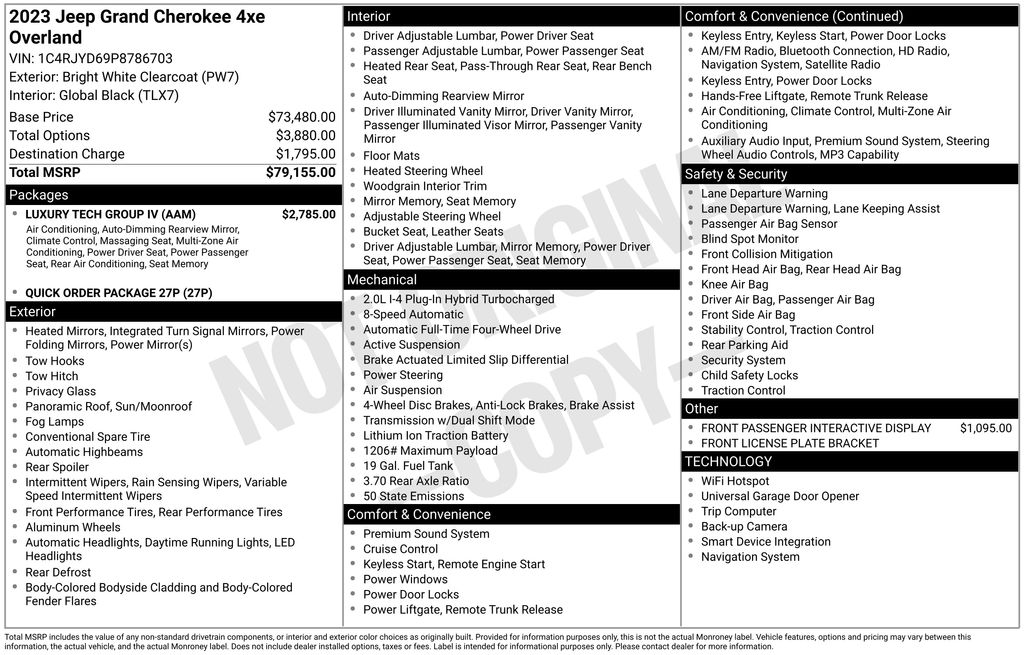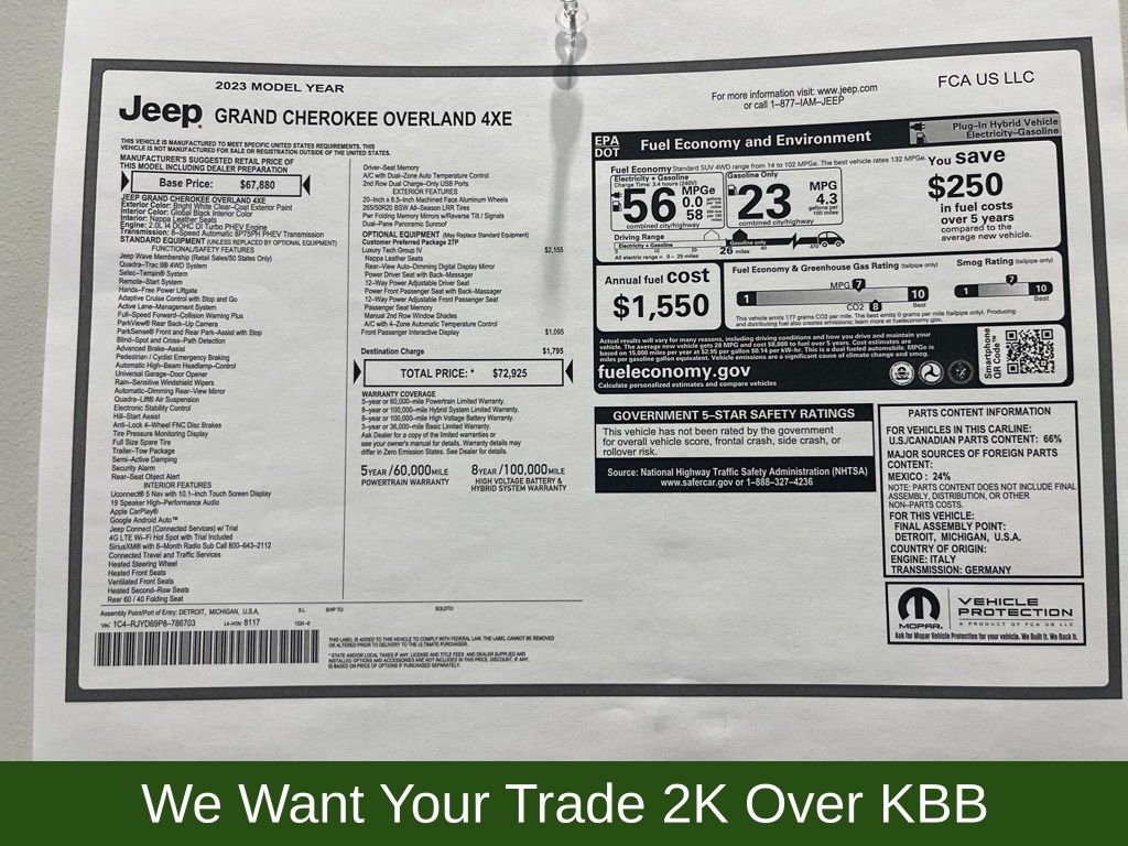 2023 Bright White Clearcoat Jeep Grand Cherokee Overland 4xe 4WD 8-Speed Automatic 2.0L I4 DOHC