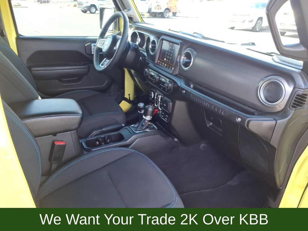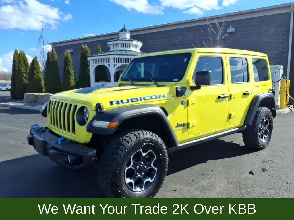 Introducing the 2023 Jeep Wrangler 4xe Rubicon - a true off-road icon that seamlessly blends power, capability, and eco-friendly innovation. This stunning Yellow Wrangler is more than just a head-turning SUV; it's a gateway to unparalleled adventures, both on and off the beaten path.