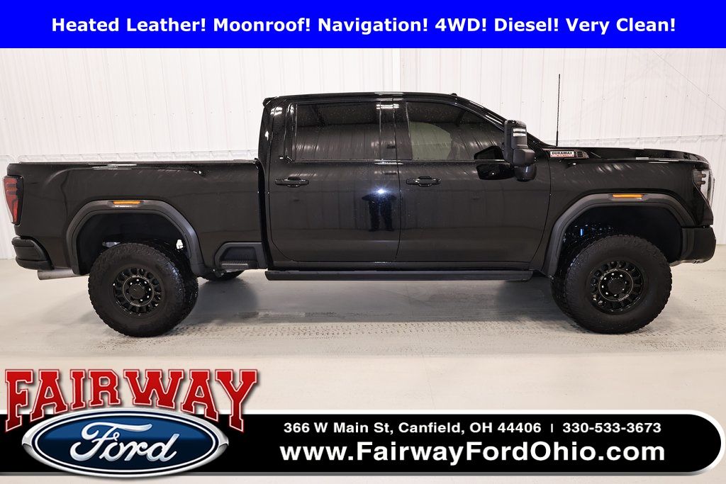 Recent Arrival! 2024 GMC Sierra 2500HD AT4X 4D Crew Cab 4WD Duramax 6.6L V8 Turbodiesel***Navigation Capable***Power Moonroof***Immaculate Heated & Cooled 40/Console/40 16-Way Power Front Leather Seats w/Driver Memory***Heated Rear Seats***Heated Steering Wheel***Power Running Boards***Power Sliding Rear Window***GMC Multipro Tailgate w/Kicker Audio System***Spray-On Bedliner***LED Cargo Area Lighting***Hard Tonneau Cover***PowerScope Trailer Tow Door Mirrors w/Driver Auto Dim, Turn Signals & Memory***11,350# GVWR Package***Gooseneck/Fifth Wheel Package Including Stamped Bed Holes w/Caps & 7-Pin Trailer Harness***Trailering Package***4X4 Shift on The Fly***3.42 Rear Axle Ratio***Rear E-Locking Differential***Trailer Brake Controller & Vehicle Trailering App***AEV Stamped Steel Skid Plates***Traction Select System w/Off-Road & Tow-Haul Modes***StabiliTrak w/Trailer Sway Control & Hill Start Assist***Hill Descent Control***Trailer Side Blind Zone Alert***220 Amp Alternator***Diesel Exhaust Brake***Roof Clearance Lamps***18" AEV Salta Black Gloss Aluminum Wheel***Rear Wheelhouse Liners***AT4X AEV Edition Featuring A Front & Rear AEV Stamped Steel Bumper***Black Tailgate Accent***Forward Collision Alert***Following Distance Indicator***Front Pedestrian Braking***Lane Departure Warning***Automatic Emergency Braking***Rear Cross Traffic Alert***Safety Alert Seat***Buckle to Drive***IntelliBeam***Teen Driver Mode***Open & Start Remote Keyless***Rear Seat Reminder***13in. Touchscreen Radio Premium GMC Infotainment System w/Google Built-In Compatibility Including Navigation Capability***HD Surround Vision***High Mount Bed View Camera***Front & Rear Park Assist***Wireless Cell Phone Charging Pad***Universal Garage Door Opener***Dual Zone Climate Control***Heavy-Duty Air Cleaner***120V Power Outlet in Cargo Bed & Instrument Panel***Bluetooth For Most Phones***Wireless Apple CarPlay & Wireless Android Auto For Compatible Phones***3 Years Remote Access Plan w/ OnStar & Wi-Fi Data Capability***SiriusXM Audio w/ SXM Trial Subscription***12in. Color Driver Information Center***AEV Embroidered Headrest For The Front Seats***60/40 Rear Folding Bench Seat w/ Storage Package***All Weather Rubber Floor Mats***Rear Window Defogger***Center High Mount Stop Lamp***Gloss Black Door Handles***Animated LED Projector Headlamps***LED Fog Lamps***One-Owner Perfect Carfax!!! Exceptional Condition, Must See!!!***Great Savings & Selection On All Used Vehicles At Fairway!!!