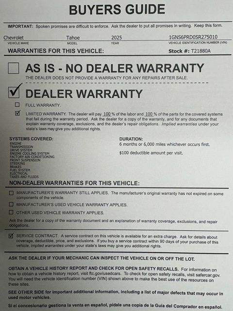 Limited 6-month / 6,000-mile warranty