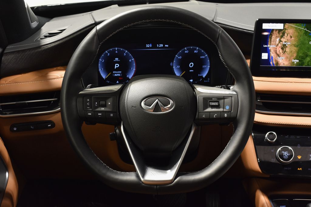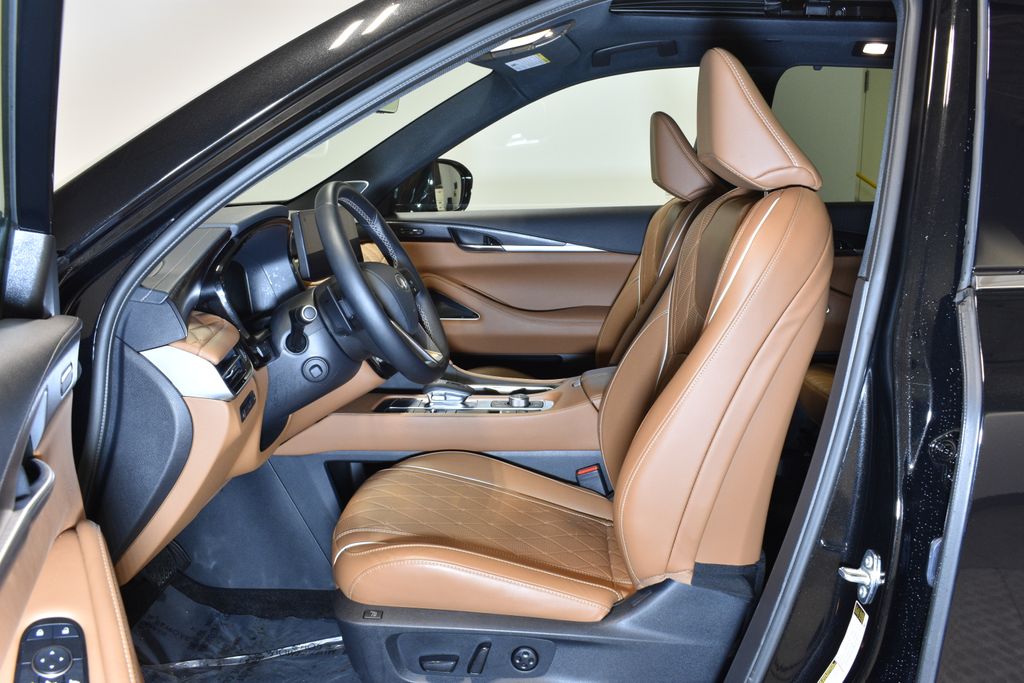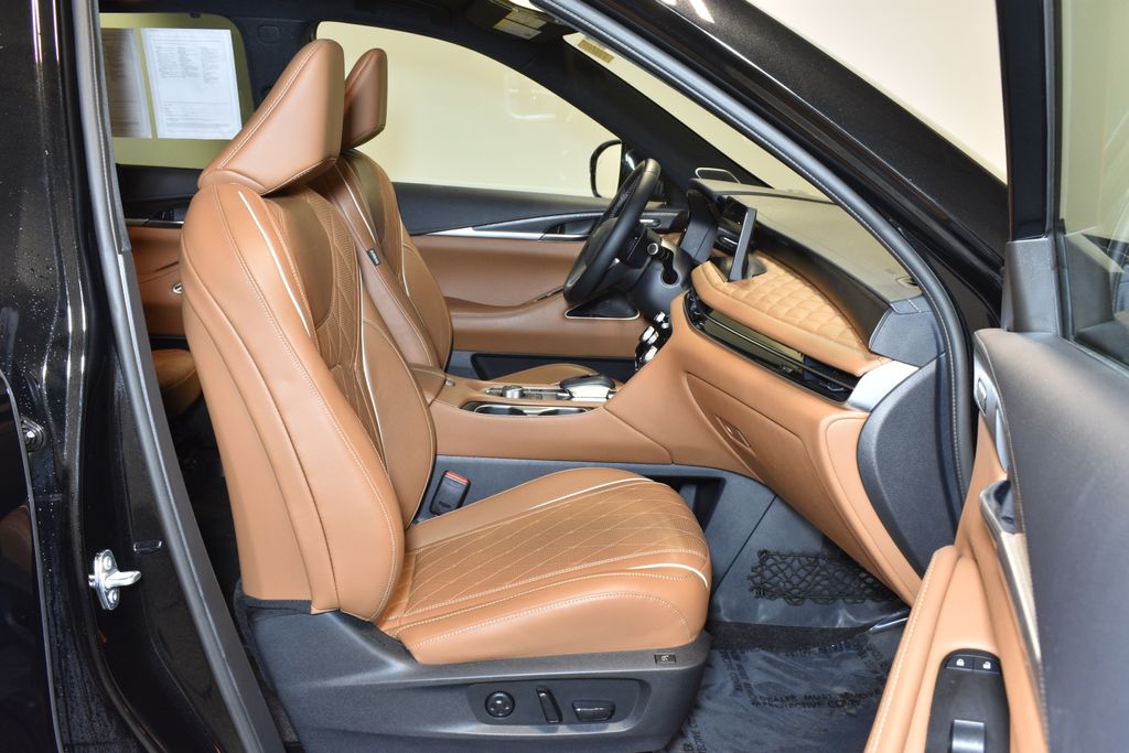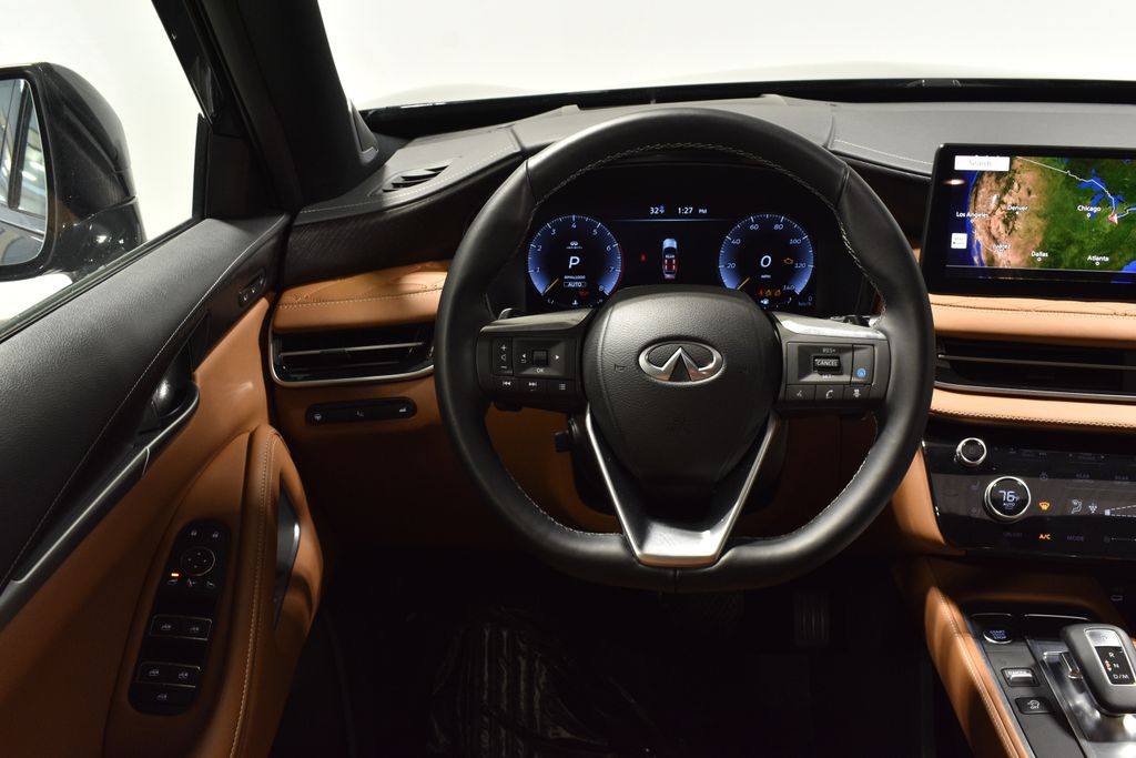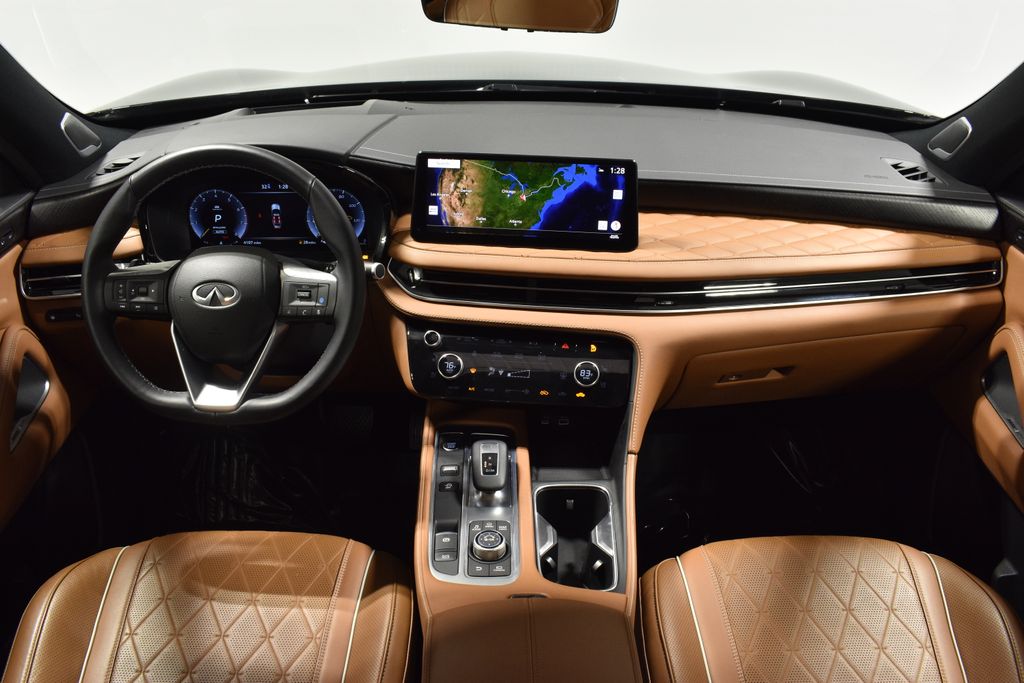 Beneath the refined exterior, the 2025 INFINITI QX60 Autograph AWD is powered by a 2.0L I4 Turbocharged engine, delivering 268 horsepower and an impressive 9-speed automatic transmission. With an EPA-estimated 22 MPG in the city and 27 MPG on the highway, this SUV offers the perfect balance of performance and efficiency.