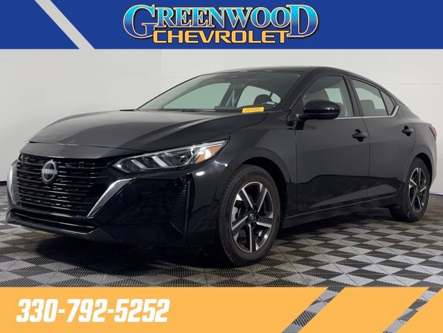 Super Black 2025 Nissan Sentra SV FWD CVT with Xtronic 2.0L I4 DOHC CVT with Xtronic, Charcoal Cloth, 16" Alloy Wheels, 4-Wheel Disc Brakes, 8 Speakers, Air Conditioning, Auto High-beam Headlights, Blind Spot Warning, Electronic Stability Control, Fully automatic headlights, NissanConnect featuring Apple CarPlay and Android Auto, Power windows, Radio data system, Radio: AM/FM with RDS/MP3/Aux-in, Remote keyless entry, Steering wheel mounted audio controls, Telescoping steering wheel.