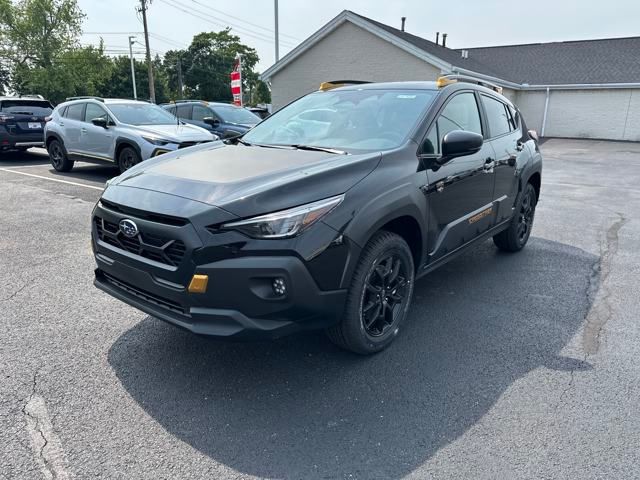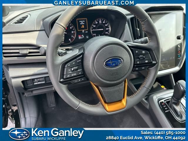 Subaru Crosstrek Wilderness 2025 Crystal Black Silica Certified. Newly Detailed, Subaru Certified Pre-Owned Certified, 10-Way Power Driver's Seat, 4-Wheel Disc Brakes, 6 Speakers, ABS brakes, Air Conditioning, Alloy wheels, AM/FM radio: SiriusXM, Anti-whiplash front head restraints, Auto High-beam Headlights, Auto-Dimming Mirror w/Compass & HomeLink, Automatic temperature control, Brake assist, Bumpers: body-color, Cargo Net, Driver door bin, Driver vanity mirror, Dual front impact airbags, Dual front side impact airbags, Electronic Stability Control, Emergency communication system, Exterior Parking Camera Rear, Four wheel independent suspension, Front anti-roll bar, Front Bucket Seats, Front Center Armrest, Front dual zone A/C, Front fog lights, Front reading lights, Fully automatic headlights, H/K Speaker System & Pwr Moonroof & Pwr Driver St, harman/kardon Surround Sound Speaker System, Heated door mirrors, Heated Front Bucket Seats, Heated front seats, Illuminated entry, Knee airbag, Leather Shift Knob, Leather steering wheel, LED Upgrade, Low tire pressure warning, Occupant sensing airbag, Outside temperature display, Overhead airbag, Overhead console, Panic alarm, Passenger door bin, Passenger vanity mirror, Power door mirrors, Power Moonroof, Power steering, Power windows, Radio data system, Radio: Subaru 11.6" Multimedia Plus System, Rear anti-roll bar, Rear Bumper Cover - Wilderness, Rear seat center armrest, Rear window defroster, Rear window wiper, Remote keyless entry, Security system, Speed control, Speed-sensing steering, Split folding rear seat, Spoiler, Steering wheel mounted audio controls, Tachometer, Telescoping steering wheel, Tilt steering wheel, Traction control, Trailer Hitch, Trip computer, Turn signal indicator mirrors, Variably intermittent wipers, Wheels: 17" x 7.0" J Matte Black Aluminum-Alloy, Wilderness StarTex Upholstery. CARFAX One-Owner. Clean CARFAX.